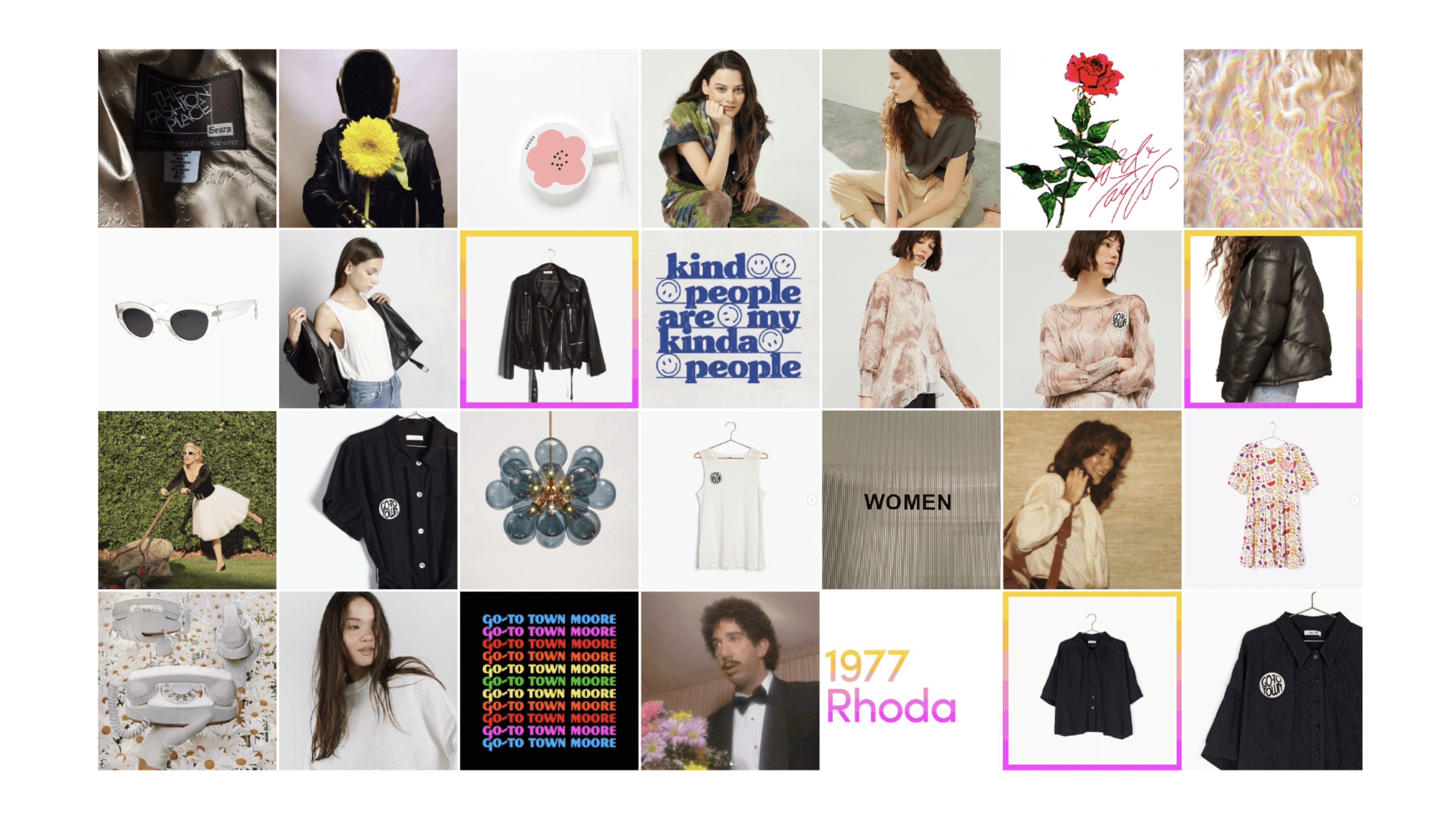 Rhoda is a prominent women’s clothing store in Westchester, New York where the young at heart go to make or complete an outfit on a budget. The optics of the store were getting tired. Along with a new brand identity, I originated the store’s trademark and brand platform, Go-To-Town™, which expresses the boutique’s value proposition and price points, and doubles as a graphic call-to-action button through social and digital channels.