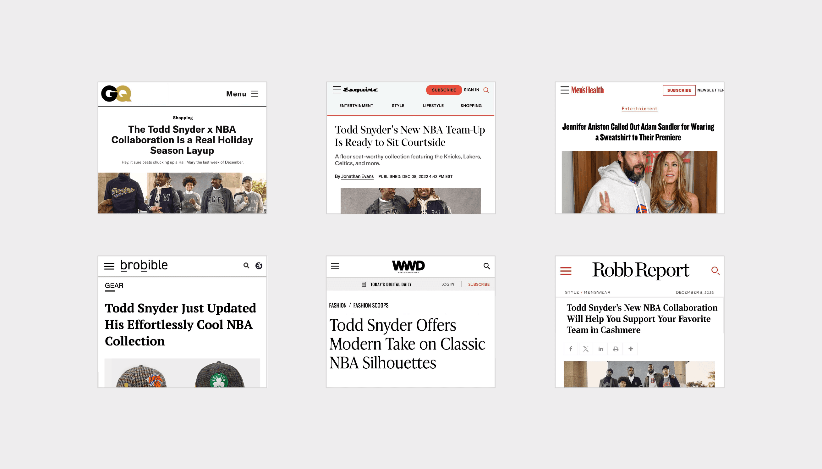 "Full court pressed". Asked to design a courtside inspired line for the NBA, Wingspan's Blaze Best paired archival team emblems in bold contrast with luxurious sartorial fabrics to launch a spirited, but heavily tailored NBA collection. Adam Sandler liked it.
